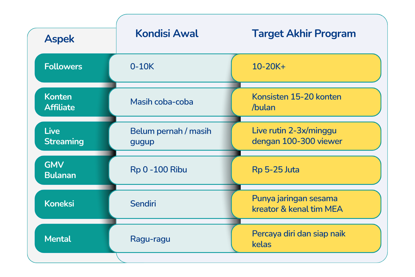 Target Capaian: Siap lulus ke program reguler dengan GMV stabil